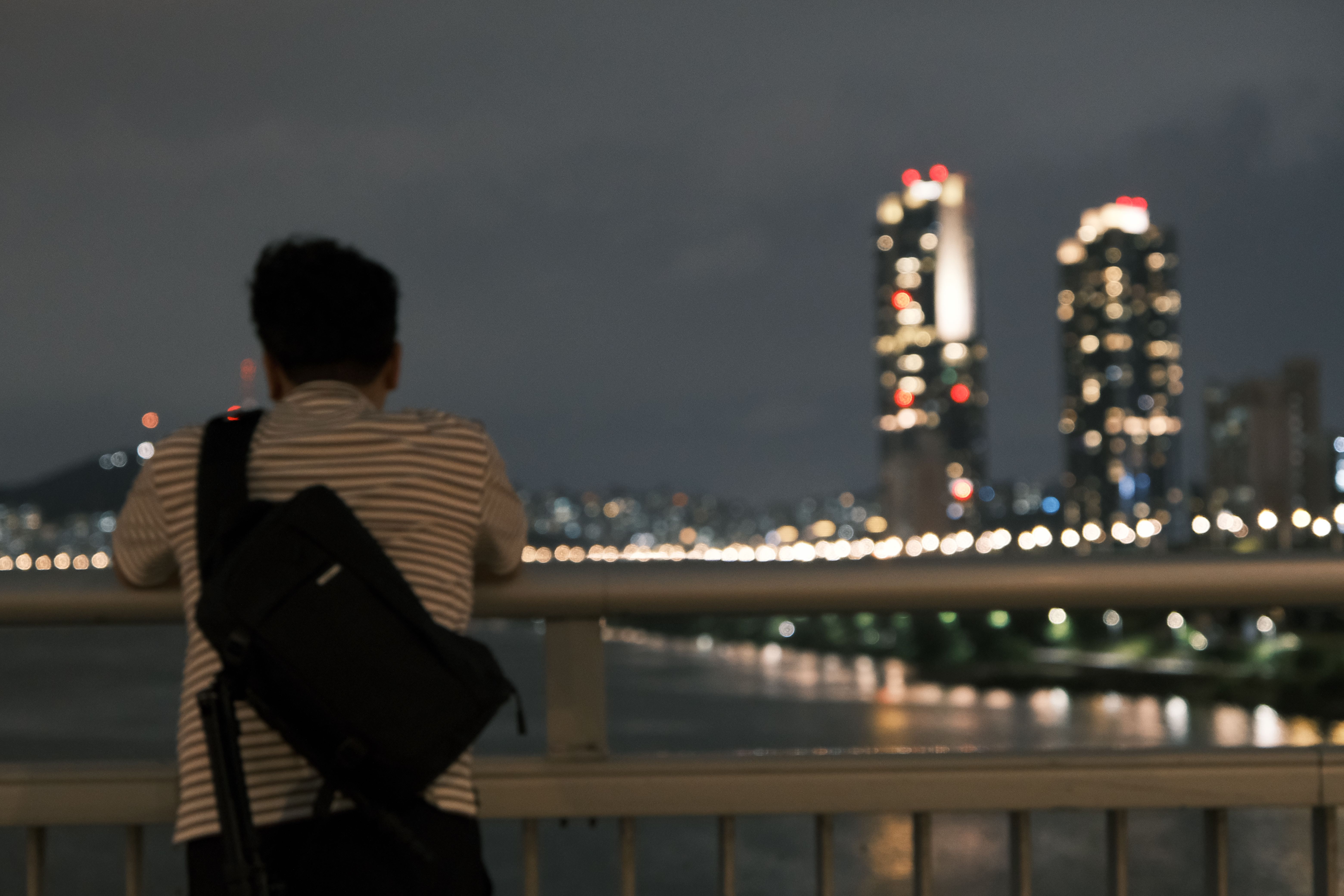 영동대교로 계단을 올라가 야경을 찍으러 삼각대까지 끌고 갔는데